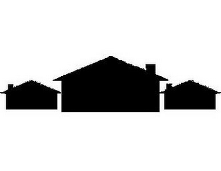 The mark consists of a silhouette of three adjacent houses, a larger house in the middle of two smaller houses with chimneys on alternating sides of the roofs.