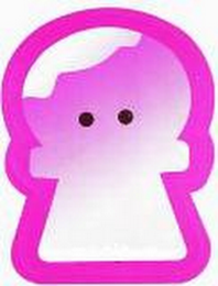 The mark consists of a whimsical figure resembling an old-fashioned key hole opening with its complete perimeter traced with a wide dark pink border line; having the upper section resembling a head and provided with two black round dots resembling the eyes of a ghost and the upper left side covered by a swatch of light pink resembling whimsical wavy hair of a ghost and having a protrusion on each side immediatelly below the head resembling two open arms with the right protrusion having the upper right area in white; having the lower section of the mark in a trapezoidal form resembling the legless legs of a ghost and the lower left side brushed stroked in white over the light pink of the section while the upper head section has a darker shade of pink.