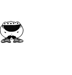 The mark consists of a stylized human being, having an enlarged rounded head and face, but no torso showing, with mittened hands covering the mouth, shod feet extending below the head, and a cap on top of the head, with strands of hair extending from under the cap on both sides of the head.