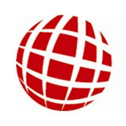 The mark consists of a design of a red sphere containing white meridians and parallels.