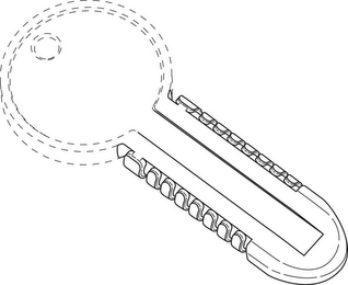 The mark consists of a programmable electronic data carrier with a narrowed neck, grooved modules running along each side, a rectangular indentation running along the top and bottom, and top and bottom edges that taper at the tip, joining together to form a rounded point. The dotted outline of the rounded handle of the data carrier shown in the drawing is for positioning only and does not comprise a feature of the mark.