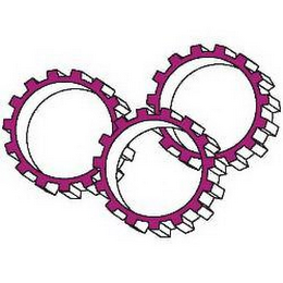 The mark consists of the colors purple, white and black; the color purple appears on the front of the interlocking gears; the color white appears in the inner and outer portions of the interlocking gears; the color black outlines the inner and outer portions of the interlocking gears.