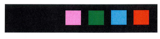 The mark consists of a black-colored rectangle wth pink, green, blue and red colored squares that are equal in size, right-aligned horizotally, vertically centered in the rectangle.