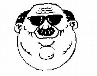The mark consists of a grotesque, characaturistic depiction of a fat bald head with sunglasses.