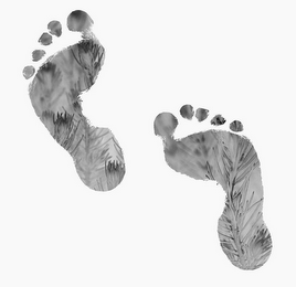 The mark consists of two human footprints, each filled in with evergreen needles.