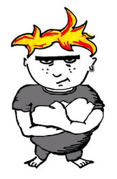The mark consists of the fanciful representation of a boy with yellow and orange hair, white skin, black eyebrows, a gray earring with a gray shirt and pants.