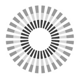 The mark consists of think lines or boxes with different shades of color arranged in a circular pattern to form three concentric circles.