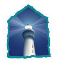 The mark consists of a design of a lighthouse, all within a polygon. The color turquoise is featured as the outline of the polygon; The color navy blue appears as the background inside the polygon and in the body of the lighthouse; The color white appears in the body of the lighthouse and as rays of light extruding from the lighthouse; The color light blue appears in the background inside the polygon.