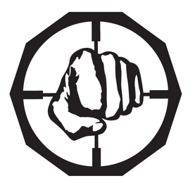 The mark consists of the shape of a decagon. Inside the decagon, there are sniper cross-hairs that lead to a clinched fist.