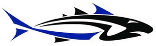 The mark consists of a design of a fish in the colors blue, black and white.