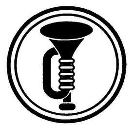 The mark consists of a trumpet in an upright position, with the bell part facing up and the mouthpiece facing down, enclosed by two concentric circles.