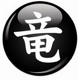 The mark consists of the Kanji character for "Tatsu" in Japanese in white lettering inside a black circle design with shades of gray in an oval on the top portion of the design and in a swirl pattern on the left hand side and bottom of the design, emulating reflections of light.