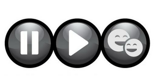 The mark consists of three circles which are adjacent to one another. Each circle has an outlined border. Inside the leftmost circle are two parallel vertical bars with rounded corners. Inside the middle circle is an equilateral triangle with rounded corners. Inside the rightmost circle are two smiley faces, one behind the other. The leftmost face in the circle appears to be looking to the right and is in the background. The rightmost face appears to be looking to the left and is in the foreground slightly in front of the other face.