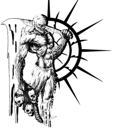The mark consists of a stylized partial ghoulish body superimposed on a sunburst design and holding a sword and stylized human heads.