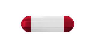 The mark consists of an oval shaped three-dimensional tablet design with the two ends in red and the middle portion in white.