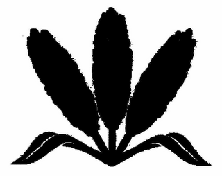 The mark consists of three heads of grain spreading out vertically from one point and two leaves spreading out laterally from the same point as the three heads of grain.