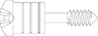The mark consists of a three-dimensional fastener configuration consisting of three shallow grooves formed on the surface of a fastener. The broken lines depicting the fastener indicate placement of the mark on the fastener and are not a part of the mark.