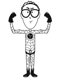 The mark consists of a stylized image of a man in a costume with a spider web and jigsaw puzzle design and wearing gloves, eyeglasses, and boots.