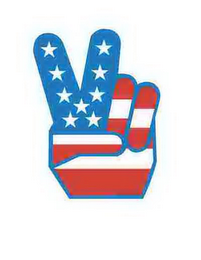 The mark consists of a stylized glove with two fingers forming a "V" with white stars on a blue field and the other fingers having a field of red and white horizontal bars.