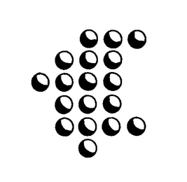 The mark consists of A collection of eighteen individual circles on six lines. The first line encompasses 3 circles; second line- 3 circles; third line 4 circles; fourth line 3 circles; fifth line 4 circles and final line l circle. The last circle of the second, third and fourth line is under the second circle of the first line. The last circle of the fifth line is under the last circle of the first line. The circle on the last line (sixth line) is under the first circle on the first line..