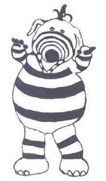 The mark consists of alternating black and white horizontal stripes on the face, torso and limbs of figurine. The eyes and hair sprig of the figurine are black.