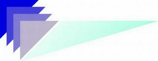 The mark consists of the colors blue and turquoise appearing in varying shades on a series of triangles extending from left to right. The triangle on the upper left portion of the mark contains the darkest shade of blue and the next three triangles each contain a lighter shade of blue. The triangle on the right begins with a pale shade of turquoise on the left side of the triangle and gradually becomes darker turquoise as the triangle extends toward the right.