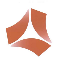 The mark consists of a geometric design formed by three separate, elongated, red-orange triangles, with the color fading at the apex of each, positioned in circular succession so that the apex of each triangle points clockwise to the inside base angle of the next triangle. The three triangles are bowed toward the center of the design so that their inward sides form a separate, concave equilateral triangle in the empty space in the center of the design.