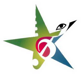 The mark consists of A general star shape having a gradient green portion, a blue portion, a black portion, and a center red portion.