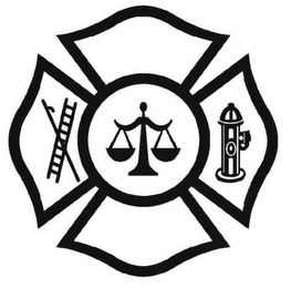 The mark consists of a shield with a ladder, sicle, scales of justice and a fire hydrant in different sections of the shield.