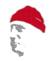 The color RED appears in the hat portion of the mark; the rest of the mark appears in BLACK.