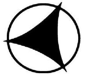 The mark consists of a circle containing a triangle within and the points extending beyond the circle.