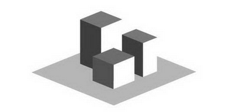 The mark consists of a design of a planar surface supporting three different size blocks in a perspective view.