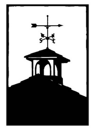 The mark consists of a fanciful design of a roofline, on top of which is a cupola, on top of which is a weathervane.