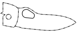The mark is a hole in the blade of a folding knife. In the drawing, the dash-double-dot lines depict an environment for the mark, which is shown in solid lines, as a somewhat V-shaped hole in the blade of a folding knife.