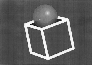 The mark consists of a spherical object inserted partly into a titled box with the spherical object containing two circular designs positioned over a wavy line.