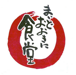 The non-Latin characters in the mark translate to "restaurant" ("sho ku dou") and "hello", "welcome back", or "thank you"("mai do oo ki ni") in English.