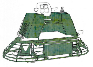The color teal green appears on the surfaces of the frame, shrouds and cowlings of the ride on power trowel.
