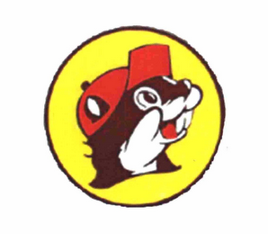 The mark consists of a brown and white beaver head wearing a red baseball cap within a yellow circle all outlined in black.