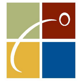 The color green appears in the upper left square; the color red appears in the upper right square; the color yellow appears in the bottom left square; and the color blue appears in the bottom right square; and the color white appears in the circle, curved line, and bordering between the squares.