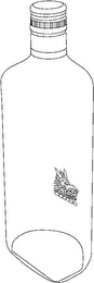 The mark consists of a distinctive three-dimensional configuration of a bottle, specifically, a D-shaped bottle with a flat frontside and rounded backside, with an embossed stylized boar's head on the backside. The bottle cap is a feature of the mark.