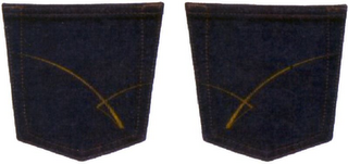 The color blue appears on the pockets and the color brown appears on the stitching on the pockets.