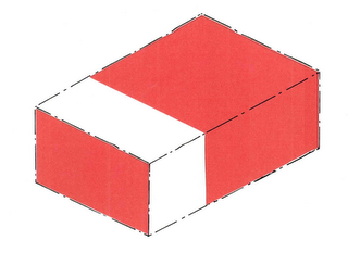 The mark consists of the colors red and white positioned on rectangular box packaging. The color red appears in two-thirds of the box shape and on the ends of the box shape; the color white appears in one-third of the box shape. The broken lines indicate the position of the mark and are not part of the mark.