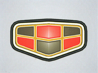 The mark consists of a design containing six blocks within a rectangular design. The color red appears in the top middle block and in the bottom left and bottom right blocks; the color grey appears in the bottom middle block, the top left and top right blocks, in the outer circular portion of the design, and in the rectangular design; the color white appears in the inner circular portion of the design, the color black appears as an outline to the outer and inner circular portions of the design; the color gold appears in between and around all six blocks; the color cream appears in the outline of each of the six blocks.