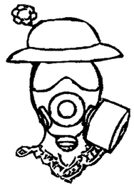 The mark consists of a bust of a woman facing forward, wearing a hat with a flower, a gas mask and having a decorative collar.