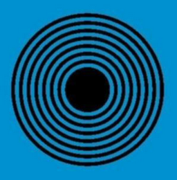 The mark consists of several black concentric circles with a black circular center against a blue background.