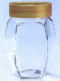The mark consists of a three-dimensional configuration of packaging for the goods, namely, a clear glass jar with a gold lid. The glass jar comprises six sides that taper upwardly towards the lid and downwardly towards the base such that the middle curves outwardly along the jar's circumference. The surface areas of the front and back sides of the jar are greater in size than the four lateral surfaces. The mark appears on a blue background that is not part of the mark and serves only to show the positioning and configuration of the clear glass jar in detail.