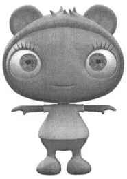 The mark consists of creature with a large head, two arms, two eyes and a mouth with five strands of hair standing vertically between its ears.