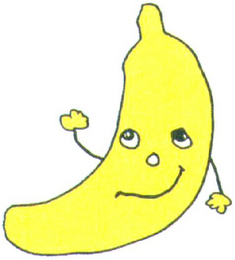 The mark consists of a yellow banana outlined in black and having two black line arms with yellow hands, and a smiling face with black eyes in white circles, a white circle nose and a black line mouth.