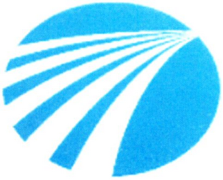 The mark consists of comprised of a blue oval traversed with five curved bands which start together at the upper right of the oval and end separated over the bottom left side of the oval. The white in the mark is background area which is not a part of the mark.