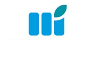 The mark consists of a stylized design comprised of two blue vertical, parallel bars with a third vertical, blue bar to the right which is shorter in height having a turquoise leaf design on top.